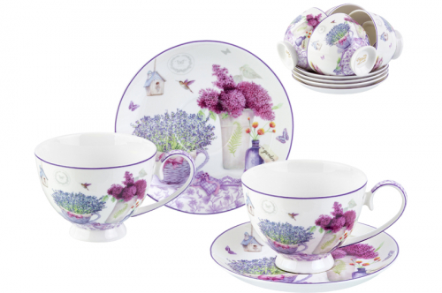 БЫЛО 4822 руб! Чайн. наб. 12 пр. 300 мл "Лаванда" на ножке, NEW BONE CHINA
