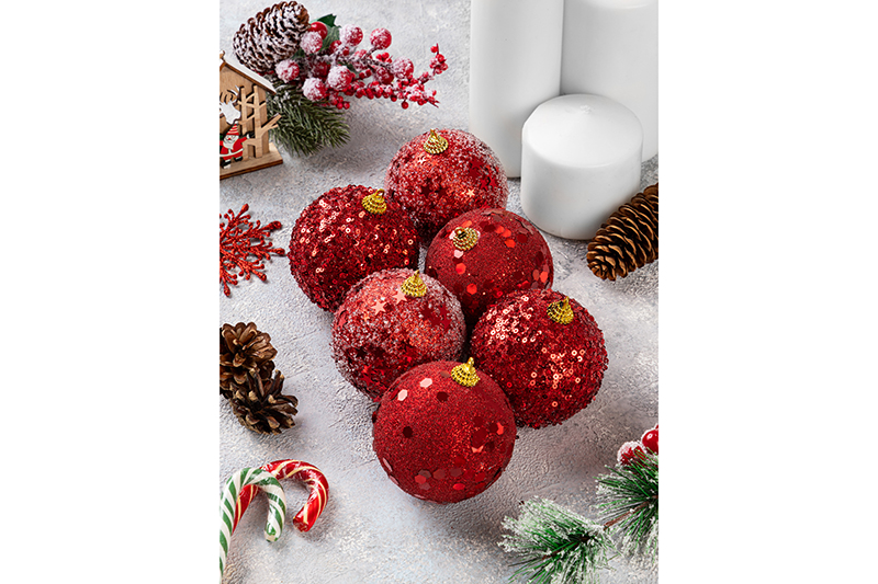 БЫЛО 647 руб! Набор 6 новогодних шаров 8*8 см "Красный"