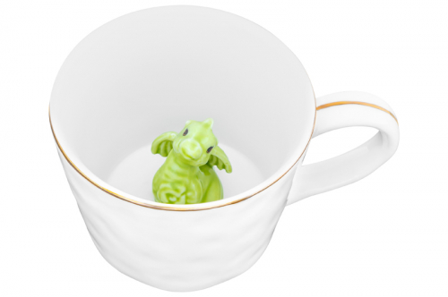БЫЛО 581 руб! Кружка 300 мл 14*10*7,5 см "Любопытный дракон внутри кружки" белая с золотом, с зеленым драконом