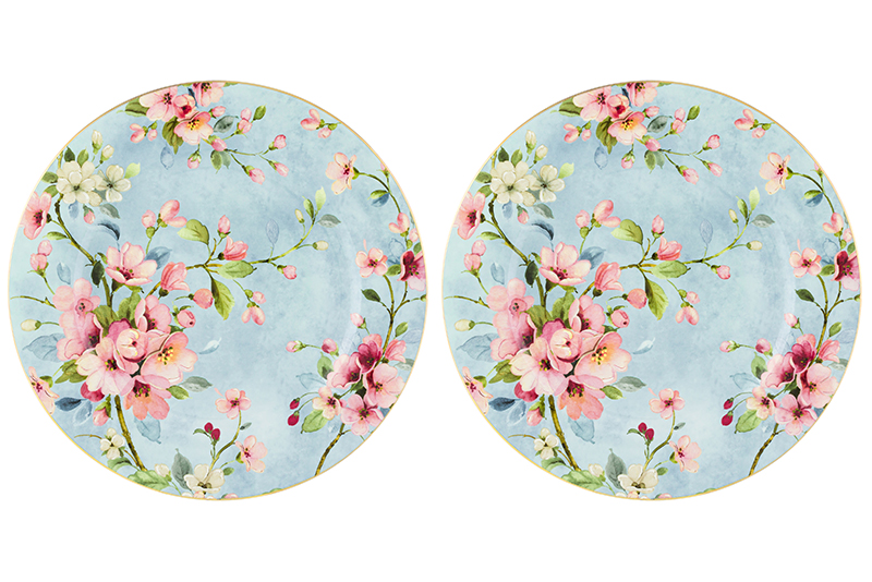 БЫЛО 1561 руб! Набор тарелок 2 пр. 26*26*2 см "Яблоневый цвет на голубом" NEW BONE CHINA