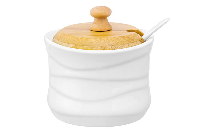 БЫЛО 386 руб! Баночка д/специй 250 мл 9,5*9*9,5 см "Айсберг волны" + ложка + дерев. крышка