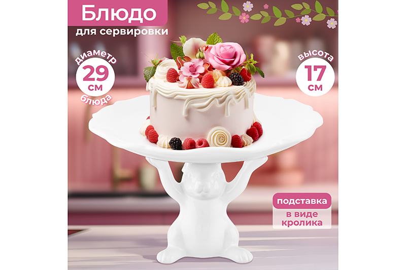 БЫЛО 2699 руб! Блюдо для сервировки 29,5*29,5*17,7 см "Кролик" на подставке