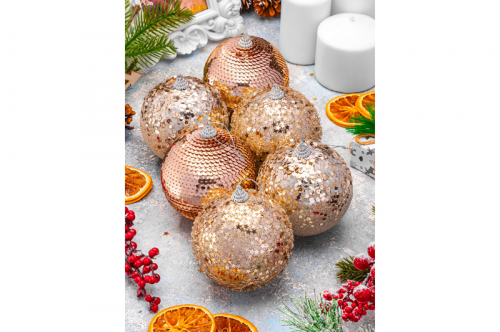 БЫЛО 1156 руб! Набор 6 новогодних шаров 9,5*9,5 см "Шампань"
