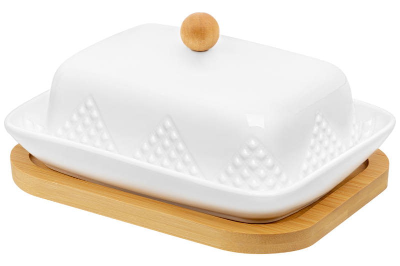 БЫЛО 977 руб! Масленка 16,5*13*8,5 см "Ромбики" на деревянной подставке