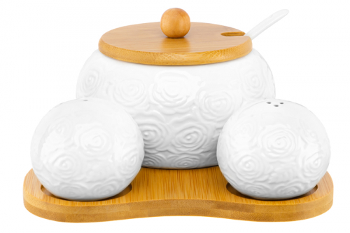 БЫЛО 1139 руб! Набор - сахарница 440 мл 16*17*8,5 см "Розы" с ложкой + солонка+ перечница дер.под.