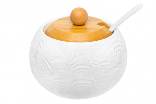 БЫЛО 533 руб! Сахарница 620 мл 11*11*12 см "Розы" + ложка + дер. крышка на дер. подставке