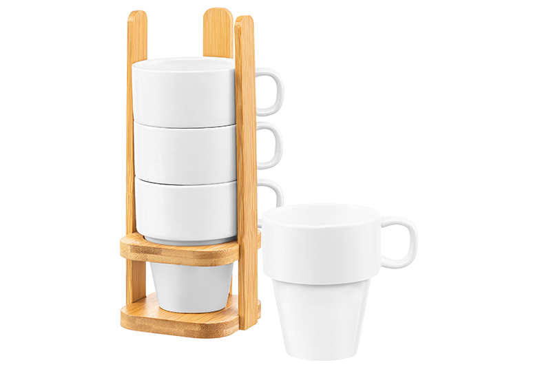 БЫЛО 1465 руб! Набор 4 кружек 320 мл 12*8,5*9,5 см "Арабеск" на дерев. подставке 12,5*12,5*29 см