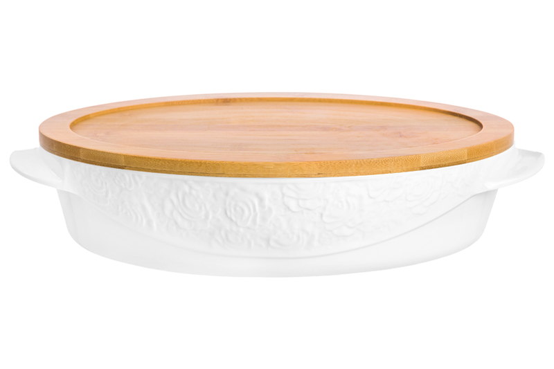 БЫЛО 2830 руб! Блюдо д/зап и серв 35*24*8 см 2,5 л "Белые розы" овал + дерев. крышка-подставка