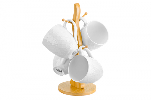 БЫЛО 1995 руб! Набор 6 кружек 320 мл 12*8,5*9,5 см "Жемчуг" на дерев. подставке 12,5*12,5*32 см