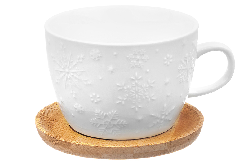 БЫЛО 533 руб! Чашка для капучино и кофе латте 500 мл "Снежинки" + дер. подстав