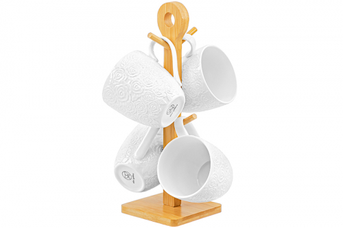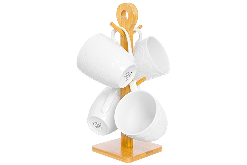 БЫЛО 1480 руб! Набор 4 кружек 350 мл "Кружево" на дерев. подставке с ручкой