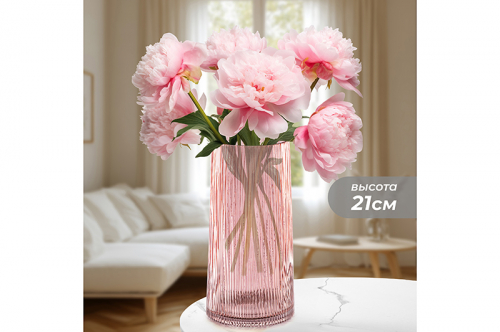 БЫЛО 1439 руб! Ваза 14,5*14,5*21 см, розовая, стекло