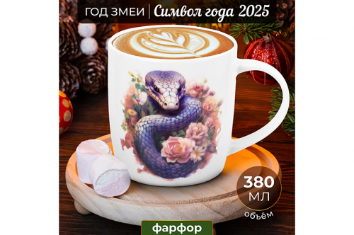 БЫЛО 247 руб! Кружка 380 мл 12,5*9*9,3 см "Змея в цветах", NEW BONE CHINA