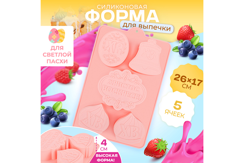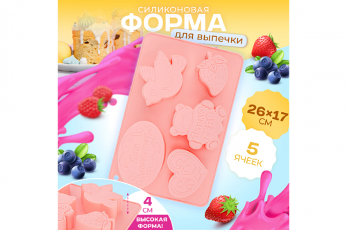 БЫЛО 247 руб! Форма для выпечки 5 ячеек 26*17*4 см "Христос Воскресе" розовая