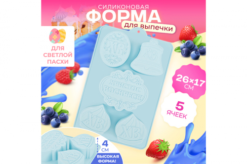 БЫЛО 247 руб! Форма для выпечки 5 ячеек 26*17*4 см "Христос Воскресе" голубая