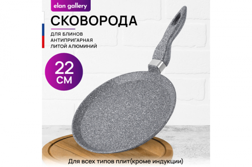 БЫЛО 1635 руб! Сковорода блинная 22 см ГАРМОНИЯ ВКУСА "Серый мрамор" н/р, 39*23*7 см