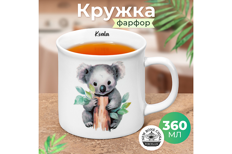 БЫЛО 297 руб! Кружка 360 мл 12,5*9,5*8,3 см "Коала" NEW BONE CHINA