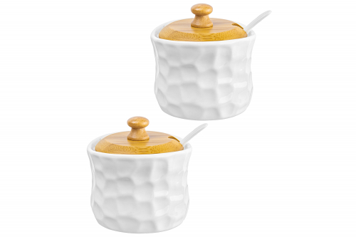 БЫЛО 731 руб! Набор 2 банок д/хранения 300 мл 10,5*10,5*9 см "Айсберг волны" + 2 ложки + 2 дер. крышки