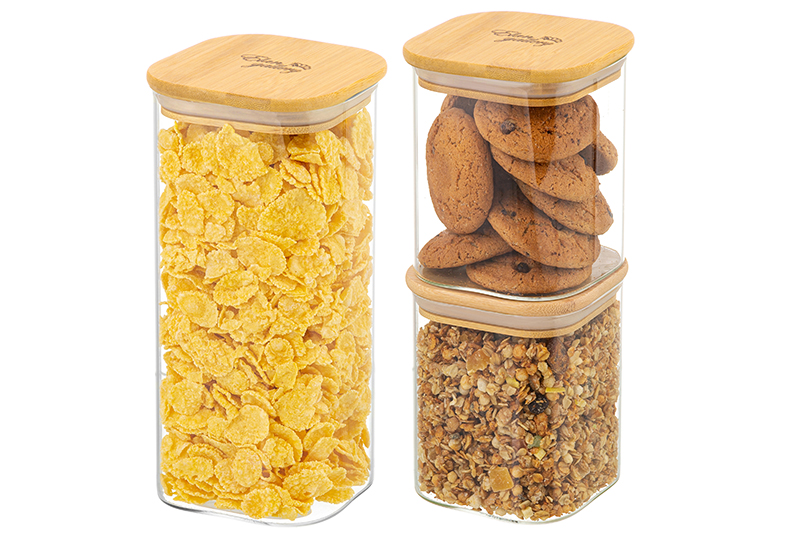 БЫЛО 1456 руб! Набор 3 банок д/хранен 2х800 мл 10*10*11,5 см+1,6 л 10*10*21,5 см "Crystal glass"+ бамб.кр с сил.пр