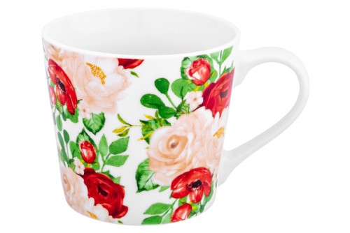 БЫЛО 297 руб! Кружка 400 мл 13*9,7*9 см "Цветочная фантазия" на белом фоне NEW BONE CHINA