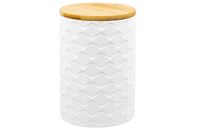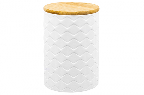 БЫЛО 517 руб! Банка д/хранения 1,1 л 11*11*16 см "Аргайл" + бамбук.крышка с силикон. упл, белый перламутр, доломит