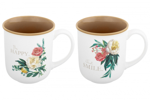 БЫЛО 672 руб! Набор 2 кружек 400 мл 12*9*10 см "BE HAPPY AND SMILE" NEW BONE CHINA
