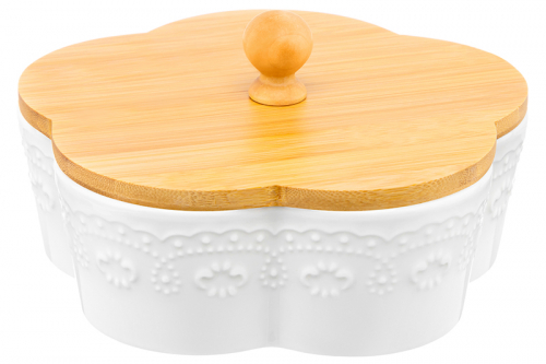 БЫЛО 1004 руб! Банка д/печенья 19,5*19,5*10 см 900 мл "Цветок Белый узор" с дерев. крышкой