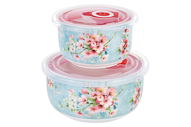 БЫЛО 590 руб! Набор 2 салатников - 13*13*6,5 см 560 мл+10,5*10,5*6 см 260 мл "Яблоневый цвет на голубом" без зол.к