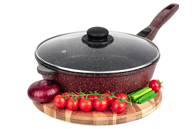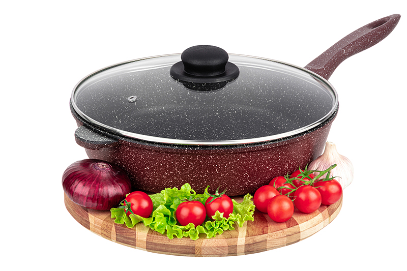 БЫЛО 2723 руб! Сковорода глубокая 28 см ГАРМОНИЯ ВКУСА "Рубиновый дуэт" С КРЫШКОЙ ф28, с/р, 51,5*29*12 см