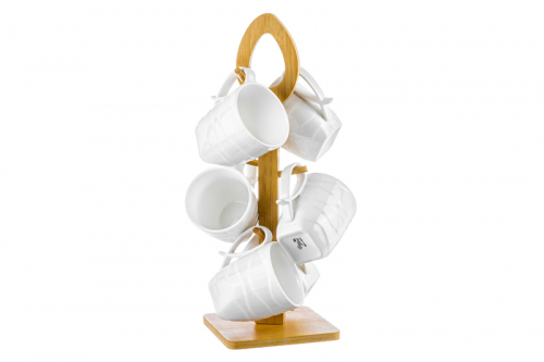 БЫЛО 2393 руб! Набор 6 кружек 300 мл 16*18*38 см "Айсберг волны" на дерев. подставке с ручкой