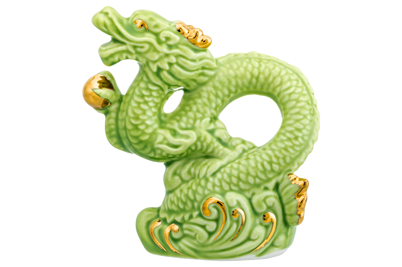 БЫЛО 669 руб! Фигурка декор. 10*5*10,5 см "Китайский дракон" зеленая с золотом