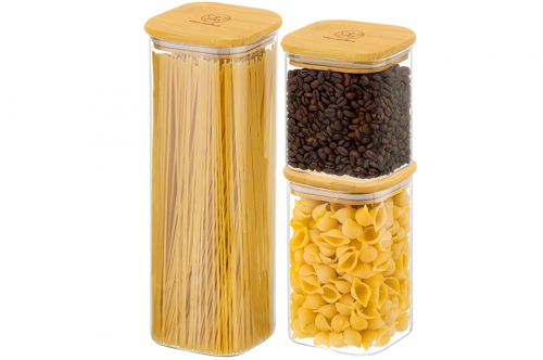 БЫЛО 1904 руб! Набор 3 банок д/хранения 2 л, 1,1 л, 800 мл "Crystal glass" + бамбук.крыш. с силик.проклад.,стекло