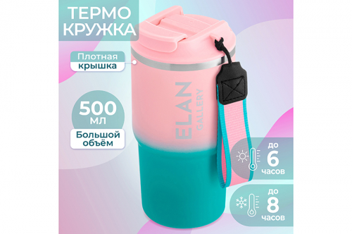Термокружка 580 мл 8,5*8,5*17,5 см "Розово-бирюзовая"