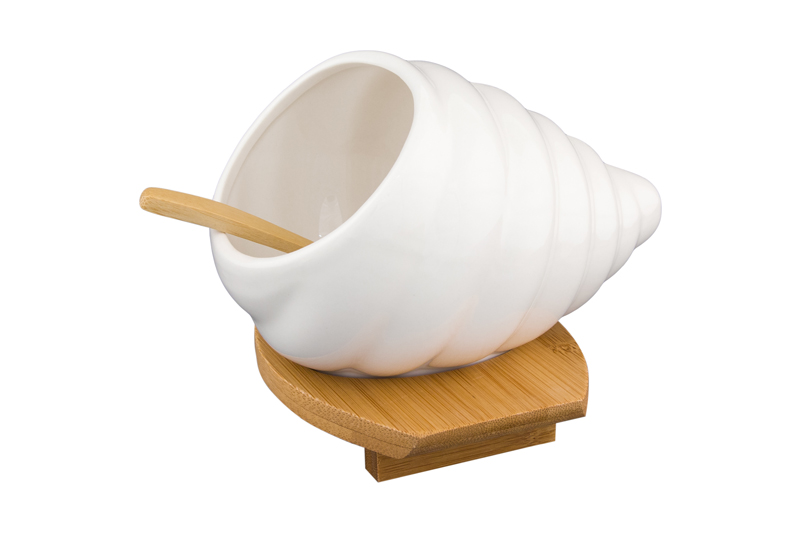 БЫЛО 722 руб. Банка д/соли 15,5*12,5*12 см 260 мл "Ракушка" + дерев. ложка на дер. подставке