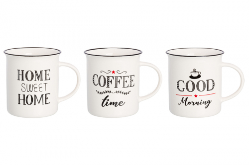 БЫЛО 792 руб! Набор 3 кружек 310 мл "HOME SWEET HOME" + "COFFEE TIME" + "GOOD MORNING" NEW BONE CHINA