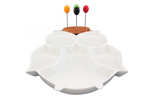БЫЛО 1401 руб! Менажница 26*32*3 см "Сова" цельная 5 секций + 4 шпажки + секция д/хр. шпажек