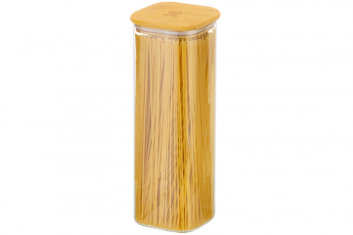 БЫЛО 869 руб! Банка д/хранения 2 л 10*10*28,5 см "Crystal glass" + бамбуков.крышка с силикон. прокладкой, стекло