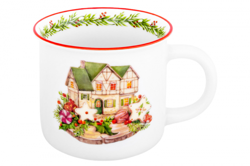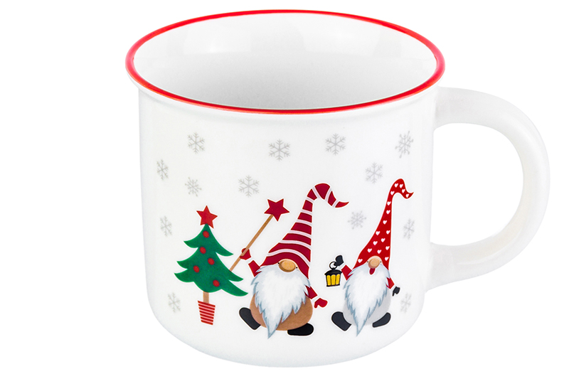 БЫЛО 300 руб! Кружка 400 мл 13*9,5*8,8 см "Гномики с елкой" с красной каймой NEW BONE CHINA