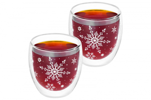 БЫЛО 915 руб! Набор 2 стаканов 250 мл 8,8*8,8*9 см "Снежинки" с белым узором и двойными стенками, стекло