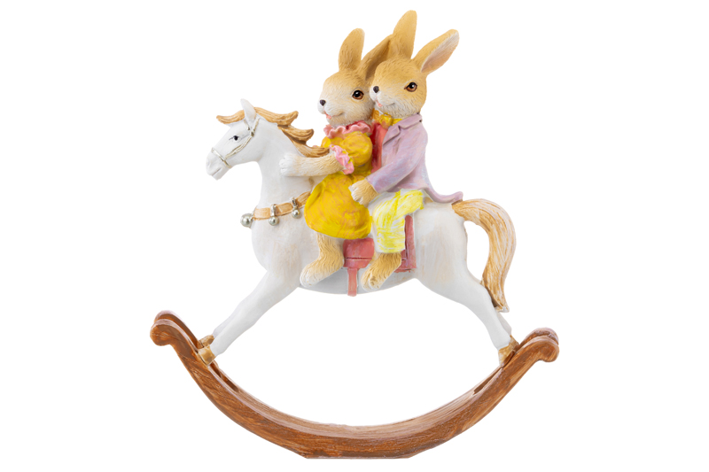 БЫЛО 1053 руб! Фигурка декор. 13*4*14,5 см "Кролики на лошадке-качалке"