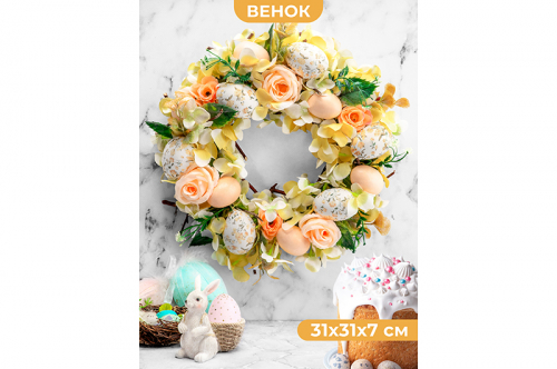 БЫЛО 1284 руб! Пасхальное украшение венок 31*31*7 см "Весеннее цветение", круг