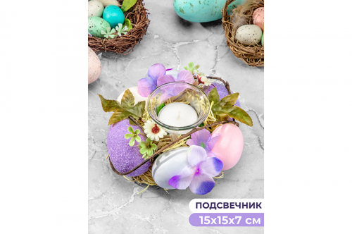 БЫЛО 772 руб! Пасхальное украшение подсвечник 15*15*7 см "Сиреневое очарование" на 1 свечу