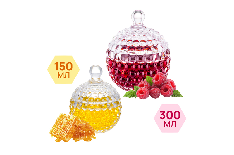 БЫЛО 901 руб! Набор 2 горшочков д/меда 150 мл 8,5*8,5*11 см круг + 300 мл 11*11*13,5 см "Пузырьки".