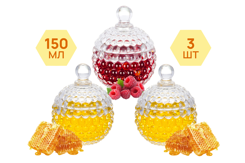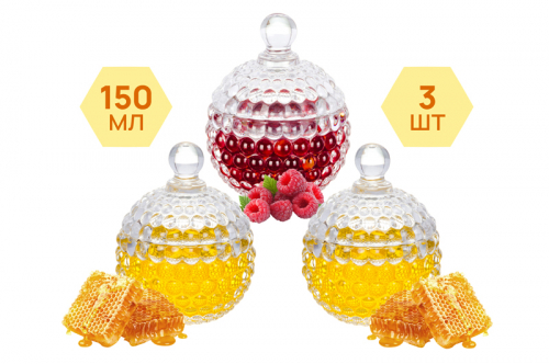 БЫЛО 901 руб! Горшочек д/меда 150 мл 8,5*8,5*11 см "Пузырьки" круг (3 шт.)