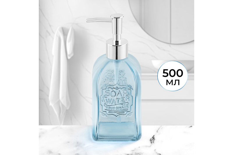 БЫЛО 232 руб! Диспенсер 500 мл 7*7*19 см "Голубой"