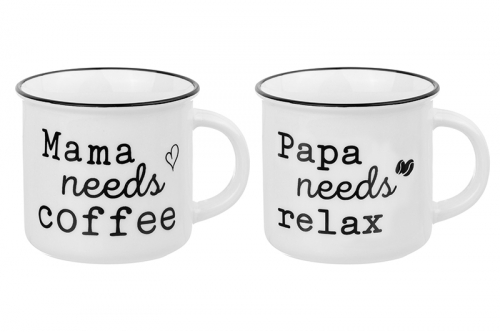 БЫЛО 592 руб! Набор 2 кружек 400 мл 13*9,5*8,8 см "Papa needs relax & Mama needs coffee" NEW BONE CHINA