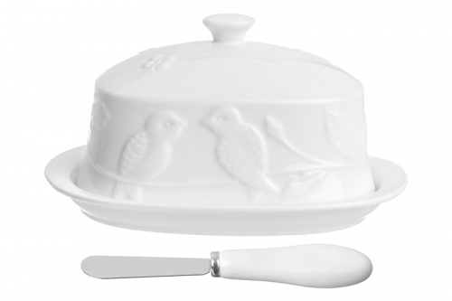 БЫЛО 882 руб! Масленка 18*13*10 см "Птички на ветке" овал + нож