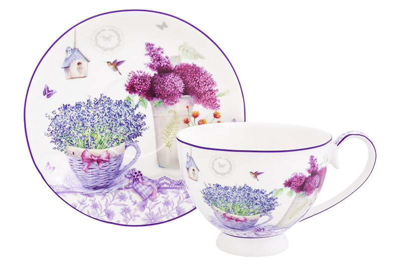 БЫЛО 783 руб! Чайн. пара 2 пр. 270 мл 12,5*9,5*7 см "Лаванда" NEW BONE CHINA