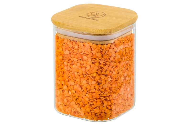 БЫЛО 350 руб! Банка д/хранения 450 мл 8*8*11 см "Crystal glass" + бамбуков.крышка с силикон. прокладкой, стекло