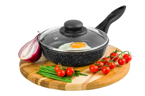 БЫЛО 2021 руб! Сковорода глубокая 24 см ГАРМОНИЯ ВКУСА "Черный мрамор" С КРЫШКОЙ ф24, с/р, 45*25*11,5 см